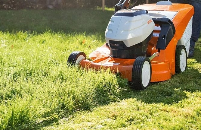 žolės pjovimas vejapjove, trimeriu ar traktoriuku;
